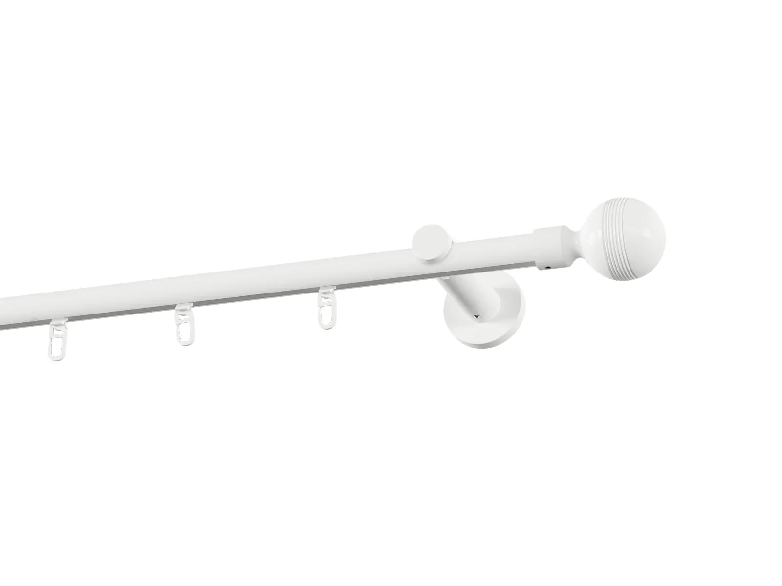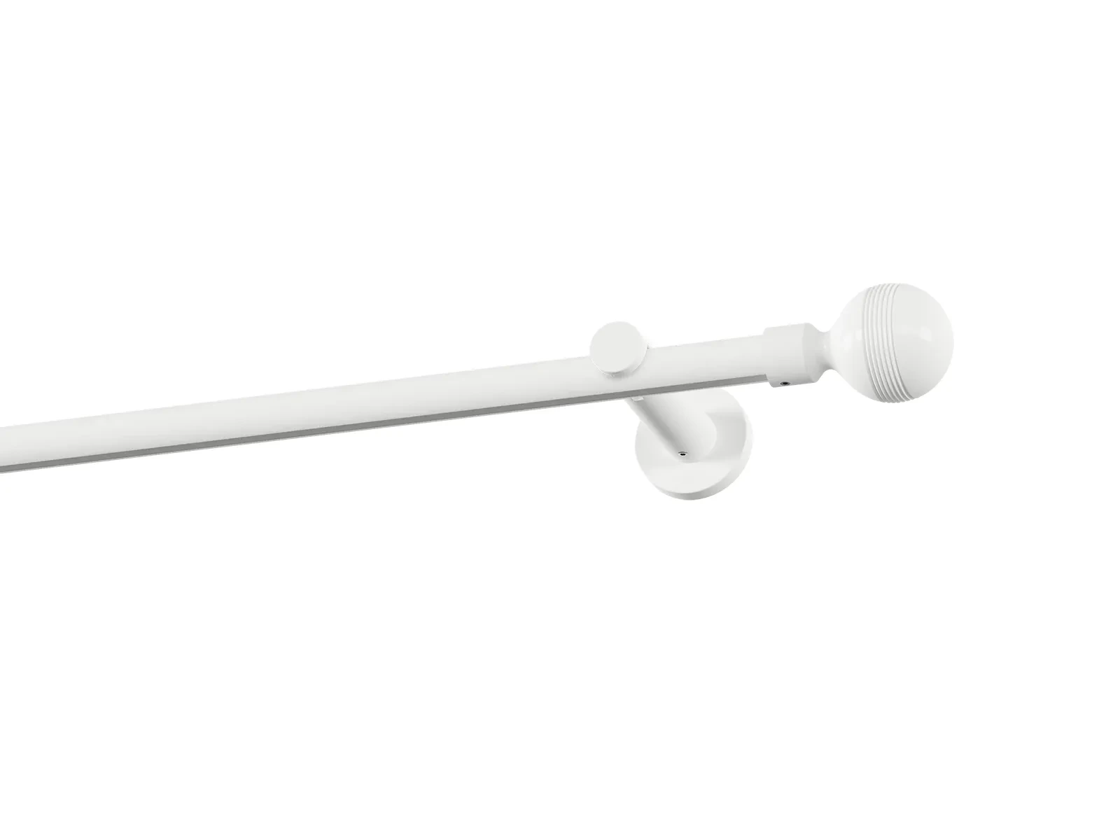 Jednořadá drážková garnýž s povrchovou úpravou - bílá lakovaná. Garnyže jsou dodávány jsou v kompletech. Tvar koncovky a typ držáku dle zadaného výběru.