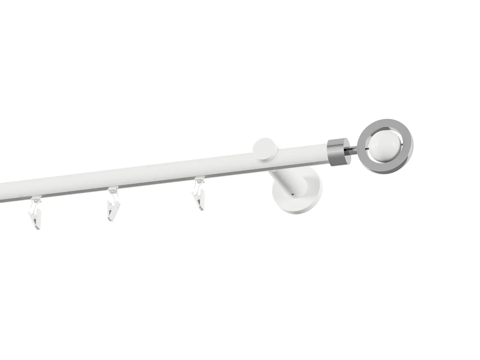 Jednořadá drážková garnýž s povrchovou úpravou - bílá lakovaná. Garnyže jsou dodávány jsou v kompletech. Tvar koncovky a typ držáku dle zadaného výběru.