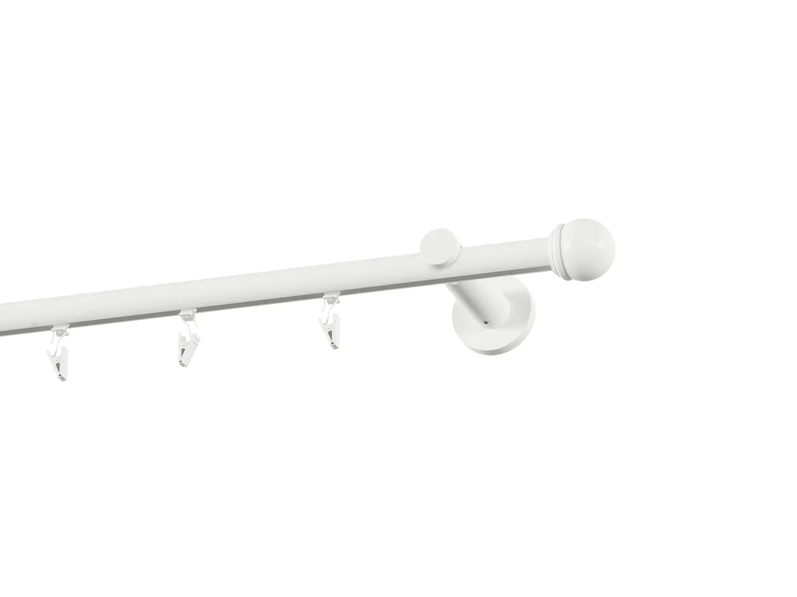 Jednořadá drážková garnýž s povrchovou úpravou - bílá lakovaná. Garnyže jsou dodávány jsou v kompletech. Tvar koncovky a typ držáku dle zadaného výběru.