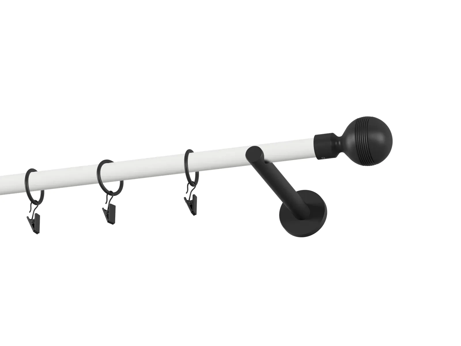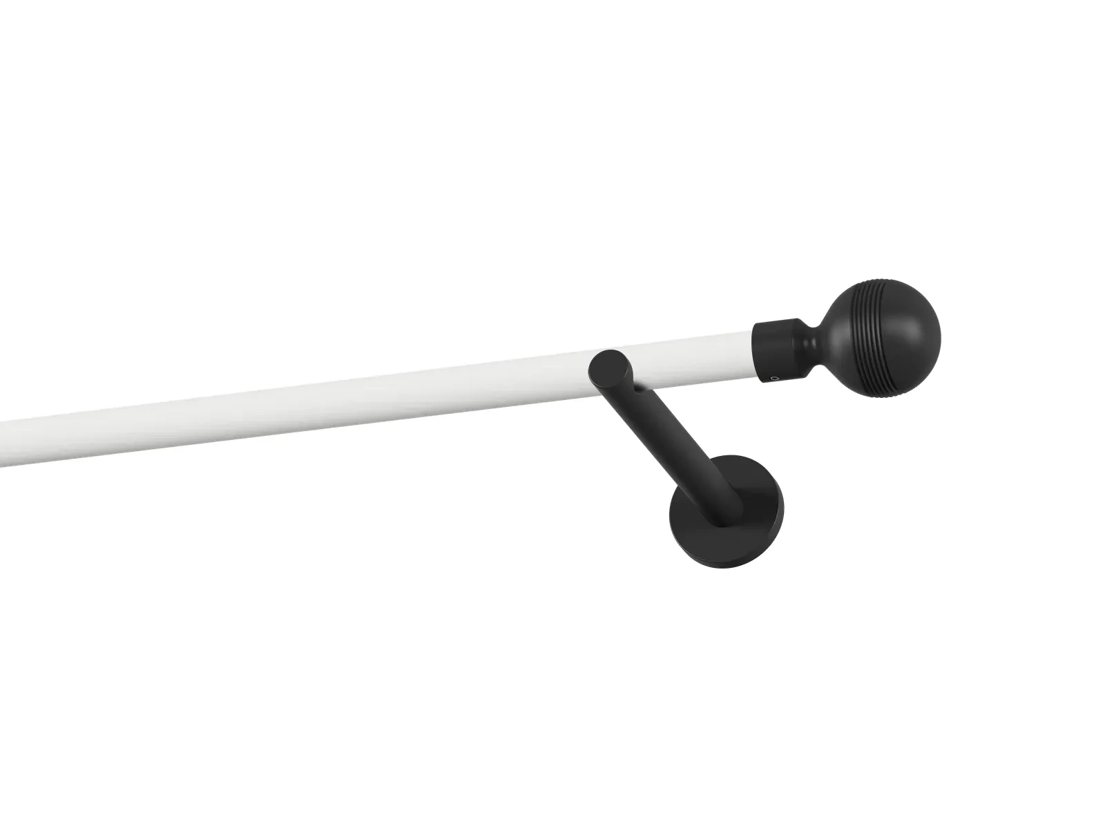 Jednořadá garnýž s povrchovou úpravou - bílo černá lakovaná. Garnyže jsou dodávány jsou v kompletech. Tvar koncovky a typ držáku dle zadaného výběru.