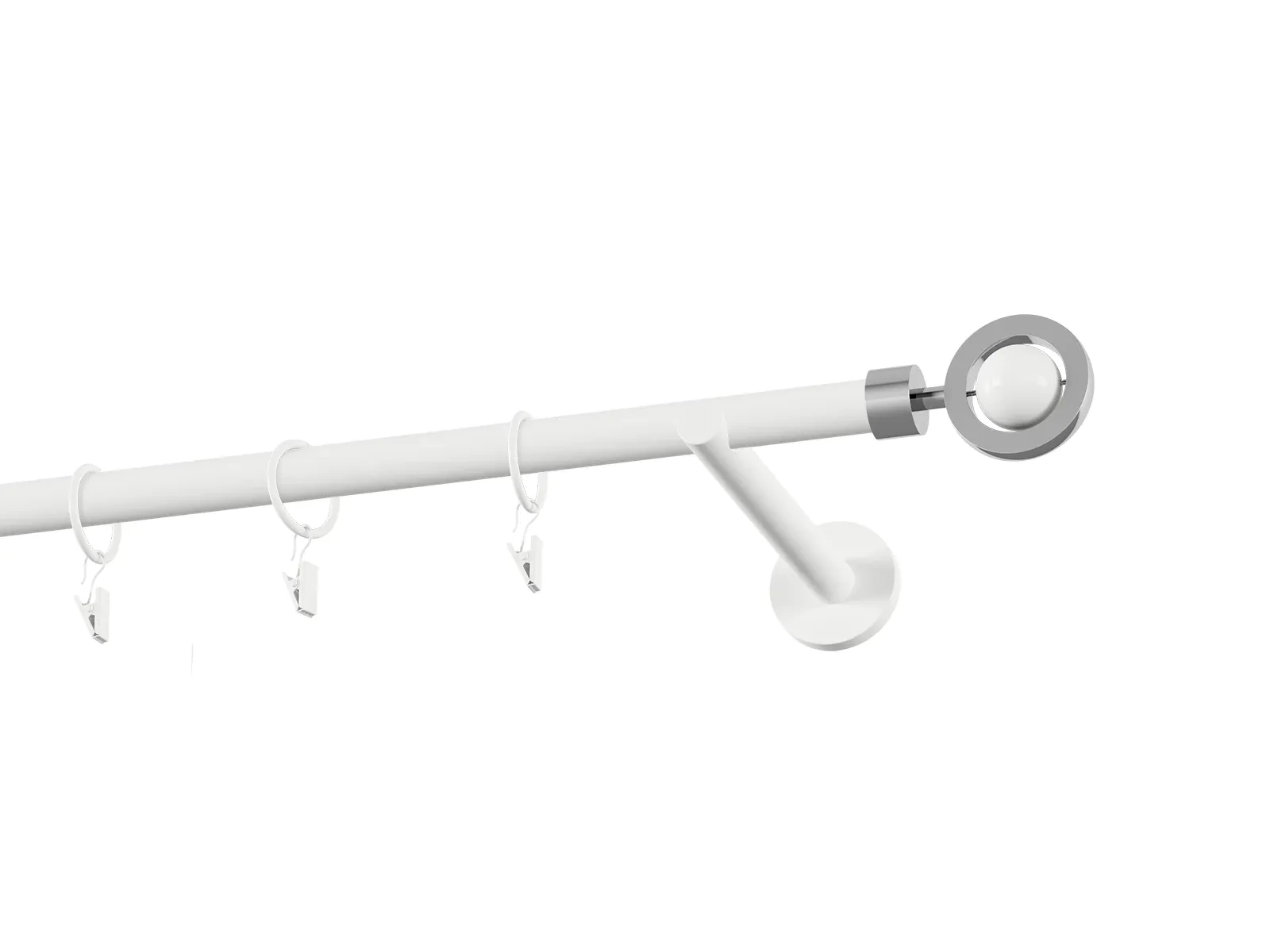 Jednořadá garnýž s povrchovou úpravou - bílá lakovaná. Garnyže jsou dodávány jsou v kompletech. Tvar koncovky a typ držáku dle zadaného výběru.