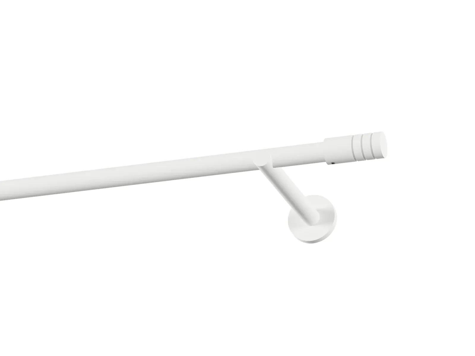 Jednořadá garnýž s povrchovou úpravou - bílá lakovaná. Garnyže jsou dodávány jsou v kompletech. Tvar koncovky a typ držáku dle zadaného výběru.