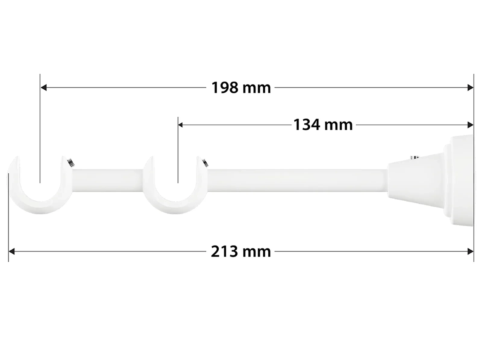 Dvouřadá garnýž s povrchovou úpravou - bílá lakovaná. Garnyže jsou dodávány jsou v kompletech. Tvar koncovky a typ držáku dle zadaného výběru.
