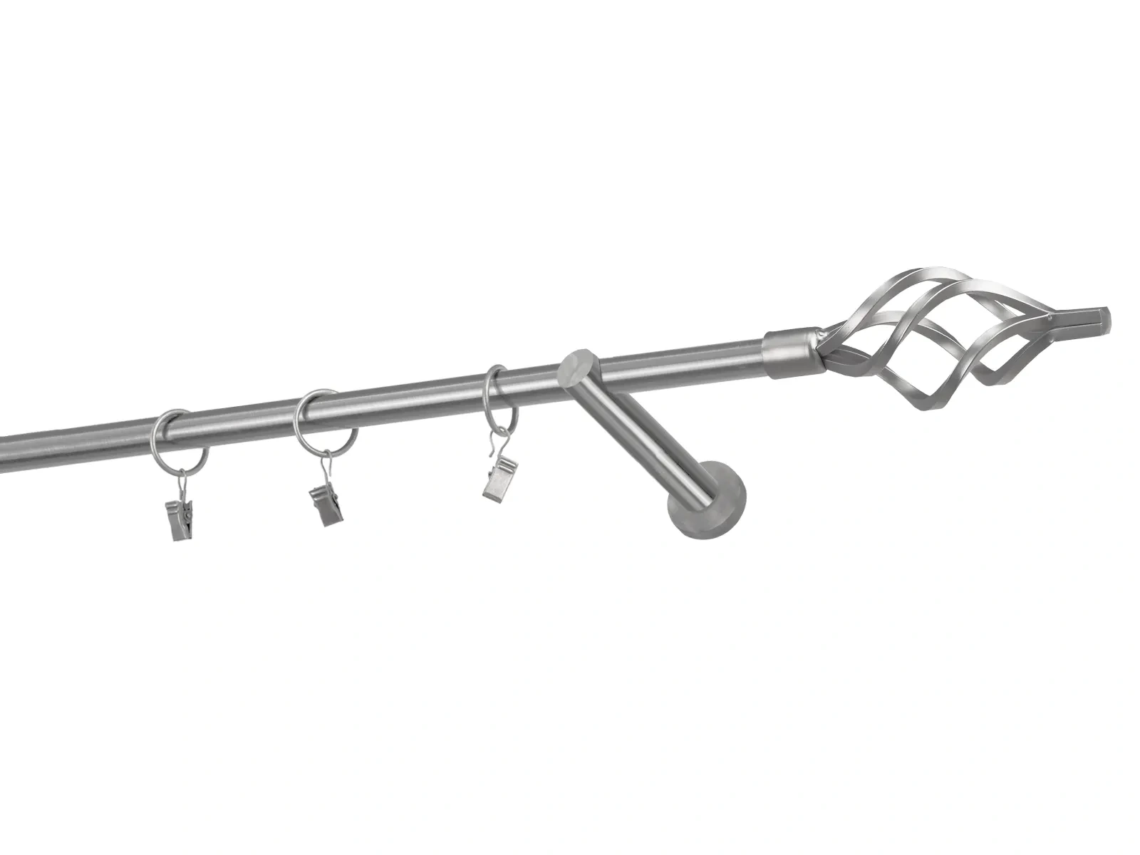 Délka 1400 mm - tyč 16mm - 1400mm - 1ks, držák - 2ks, koncovka - 2ks, kroužek se skřipcem - 13ks (při výběru parametru příslušenství s kroužky se skřipcem), šrouby a hmoždinky pro montáž
