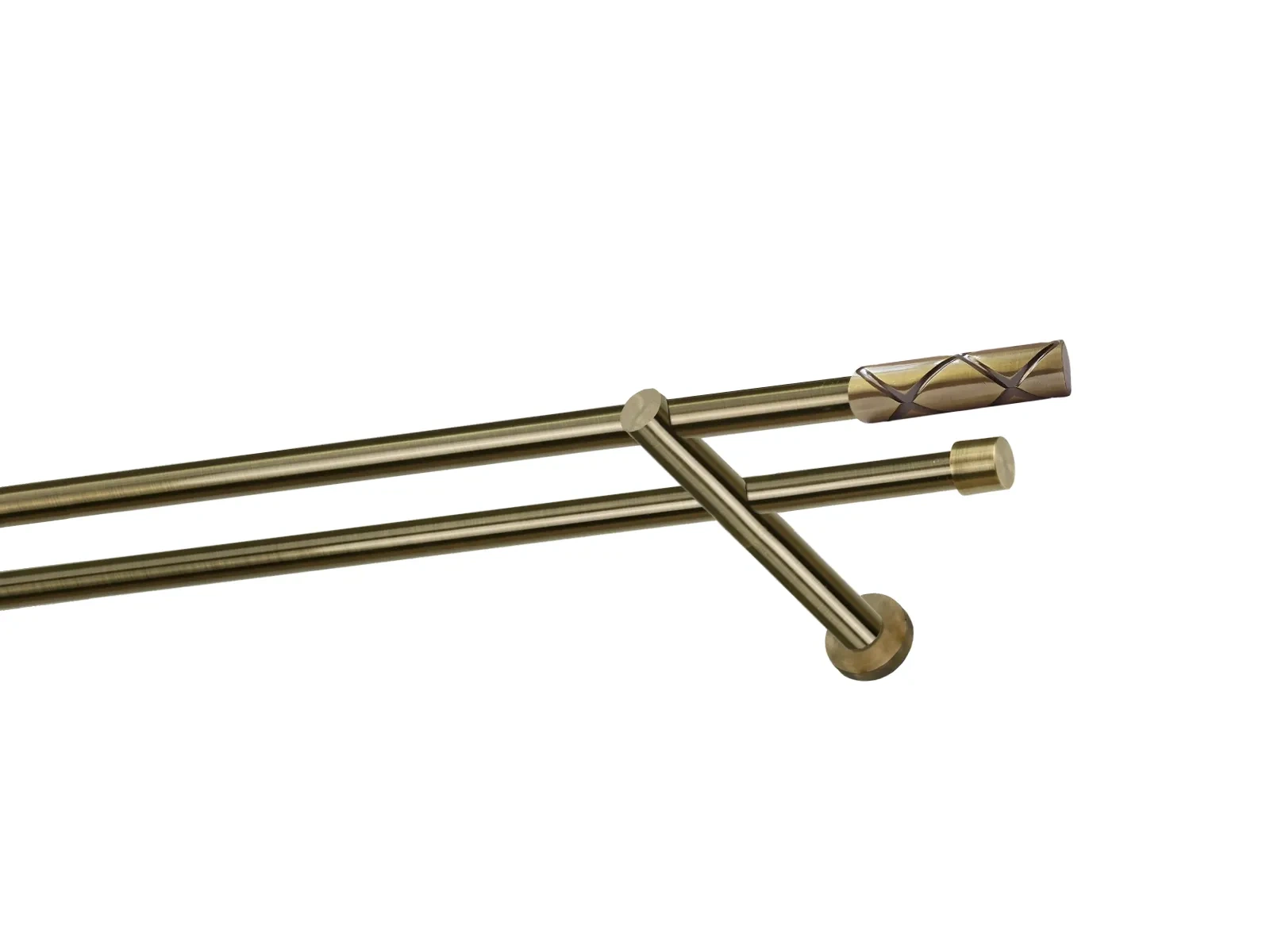 Dvouřadá garnýž s povrchovou úpravou - odstín antik (matné zlato). Celokovová garnýž s kvalitní povrchovou úpravou - galvanické pokovování. Galvanické pokovování zabezpečuje vyšší povrchovou tvrdost, zvýšenú dolnost vůči poškrábání, hladký povrch. Dodávané jsou v kompletech.