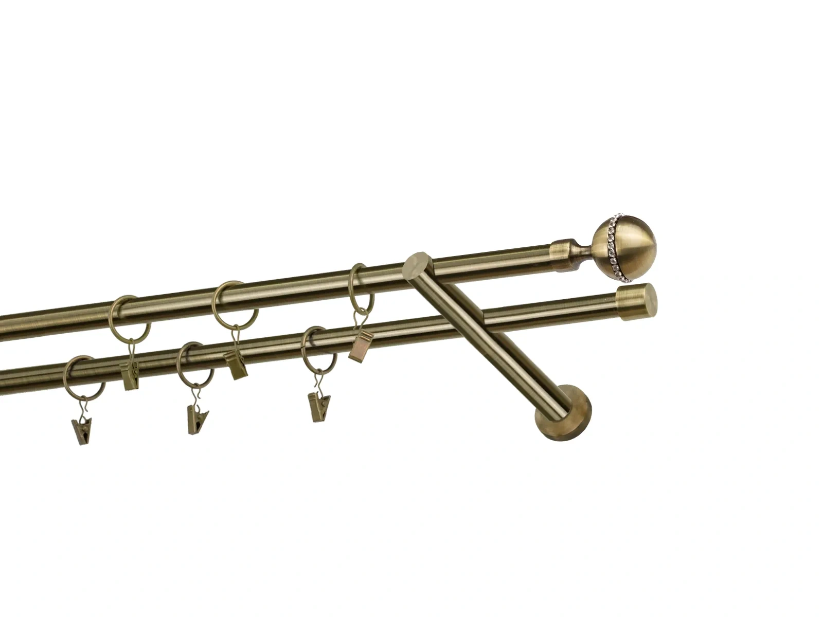 Dvouřadá garnýž s povrchovou úpravou - odstín antik (matné zlato). Celokovová garnýž s kvalitní povrchovou úpravou - galvanické pokovování. Galvanické pokovování zabezpečuje vyšší povrchovou tvrdost, zvýšenú dolnost vůči poškrábání, hladký povrch. Dodávané jsou v kompletech.