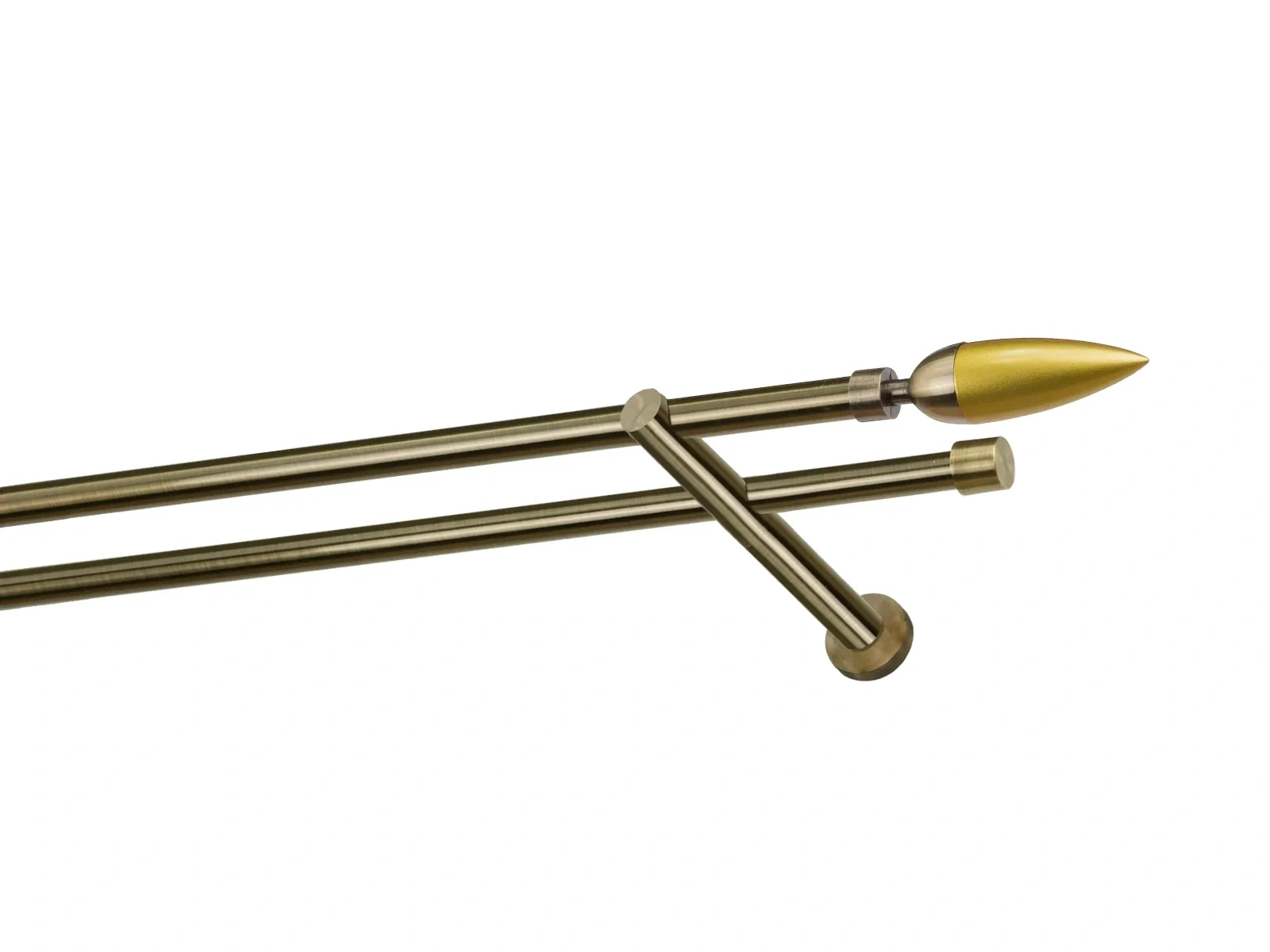 Dvouřadá garnýž s povrchovou úpravou - odstín antik (matné zlato). Celokovová garnýž s kvalitní povrchovou úpravou - galvanické pokovování. Galvanické pokovování zabezpečuje vyšší povrchovou tvrdost, zvýšenú dolnost vůči poškrábání, hladký povrch. Dodávané jsou v kompletech.