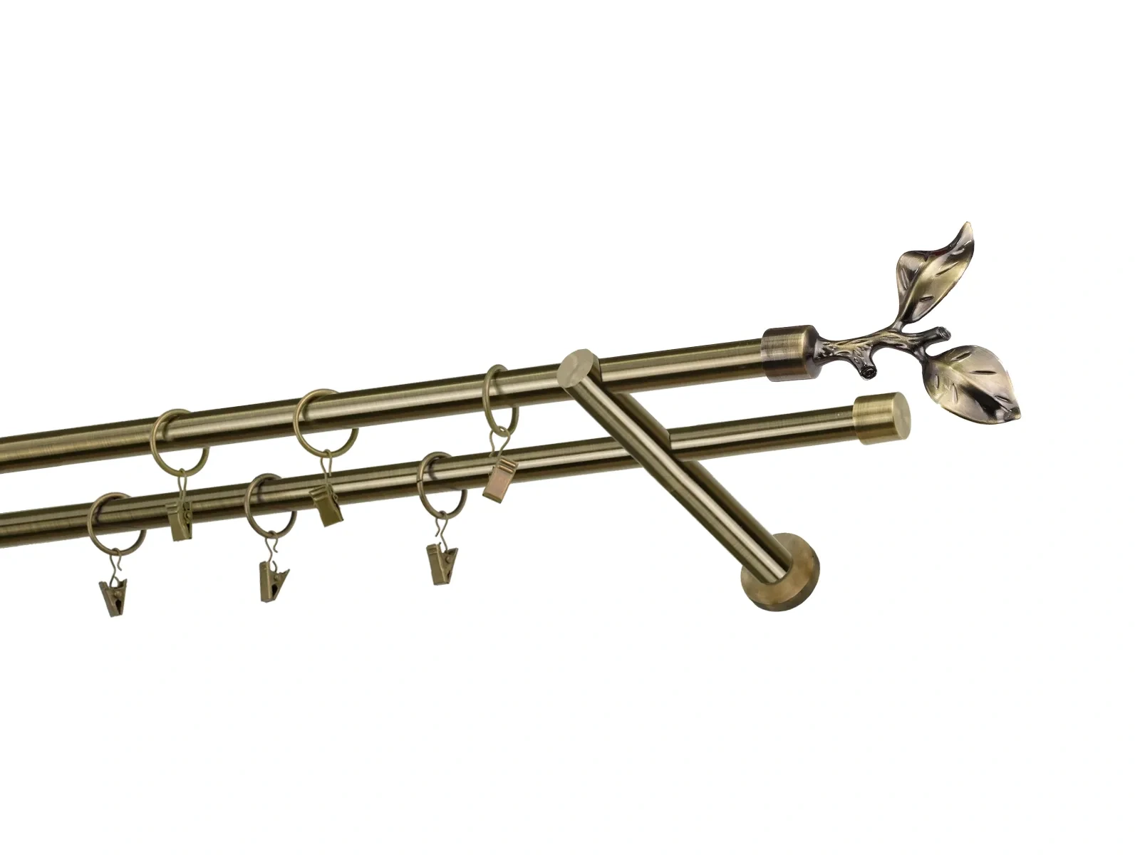 Dvouřadá garnýž s povrchovou úpravou - odstín antik (matné zlato). Celokovová garnýž s kvalitní povrchovou úpravou - galvanické pokovování. Galvanické pokovování zabezpečuje vyšší povrchovou tvrdost, zvýšenú dolnost vůči poškrábání, hladký povrch. Dodávané jsou v kompletech.