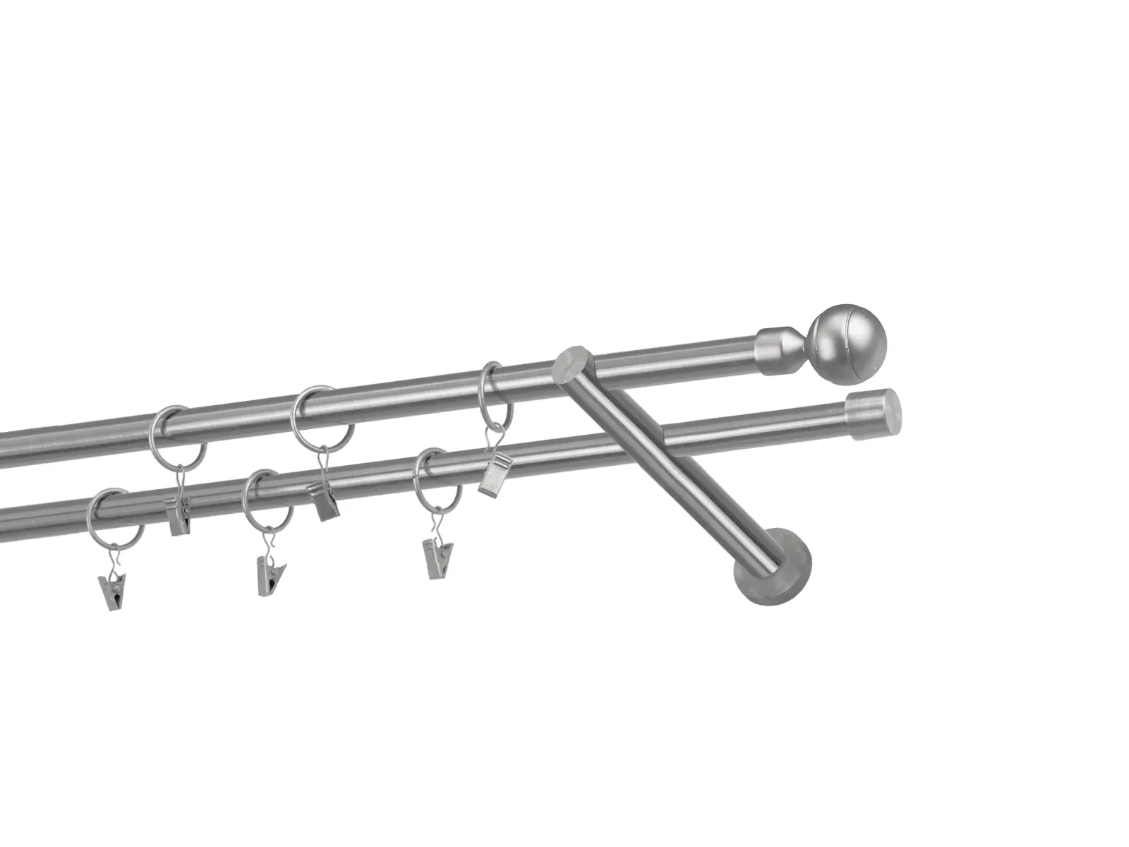 Dvouřadá garnýž s povrchovou úpravou - odstín satin (matné stříbro). Celokovová garnýž s kvalitní povrchovou úpravou - galvanické pokovování. Galvanické pokovování zabezpečuje vyšší povrchovou tvrdost, zvýšenú dolnost vůči poškrábání, hladký povrch. Dodávané jsou v kompletech.