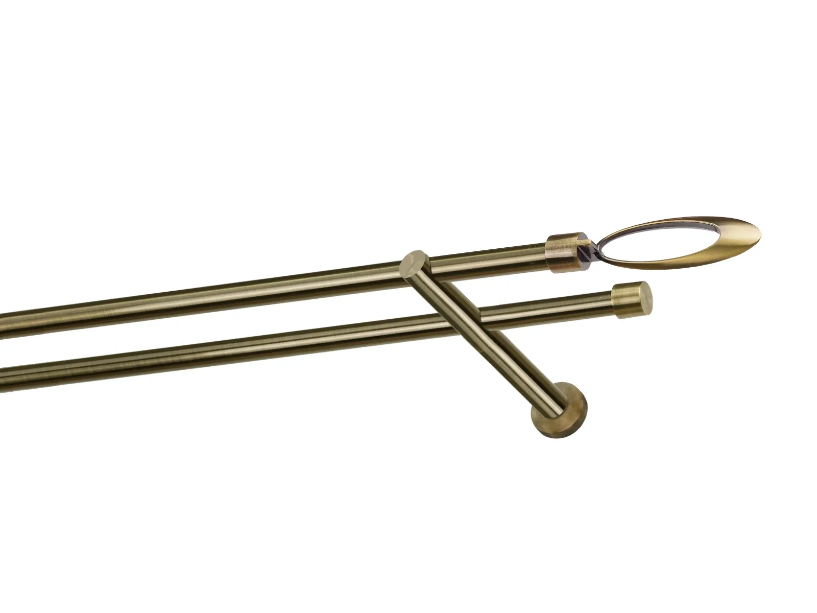 Dvouřadá garnýž s povrchovou úpravou - odstín antik (matné zlato). Celokovová garnýž s kvalitní povrchovou úpravou - galvanické pokovování. Galvanické pokovování zabezpečuje vyšší povrchovou tvrdost, zvýšenú dolnost vůči poškrábání, hladký povrch. Dodávané jsou v kompletech.