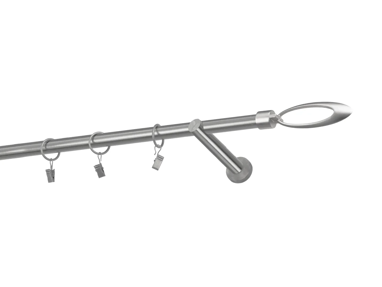 Jednořadá garnýž s povrchovou úpravou - odstín satin (matné stříbro). Celokovová garnýž s kvalitní povrchovou úpravou - galvanické pokovování. Galvanické pokovování zabezpečuje vyšší povrchovou tvrdost, zvýšenú dolnost vůči poškrábání, hladký povrch. Dodávané jsou v kompletech.