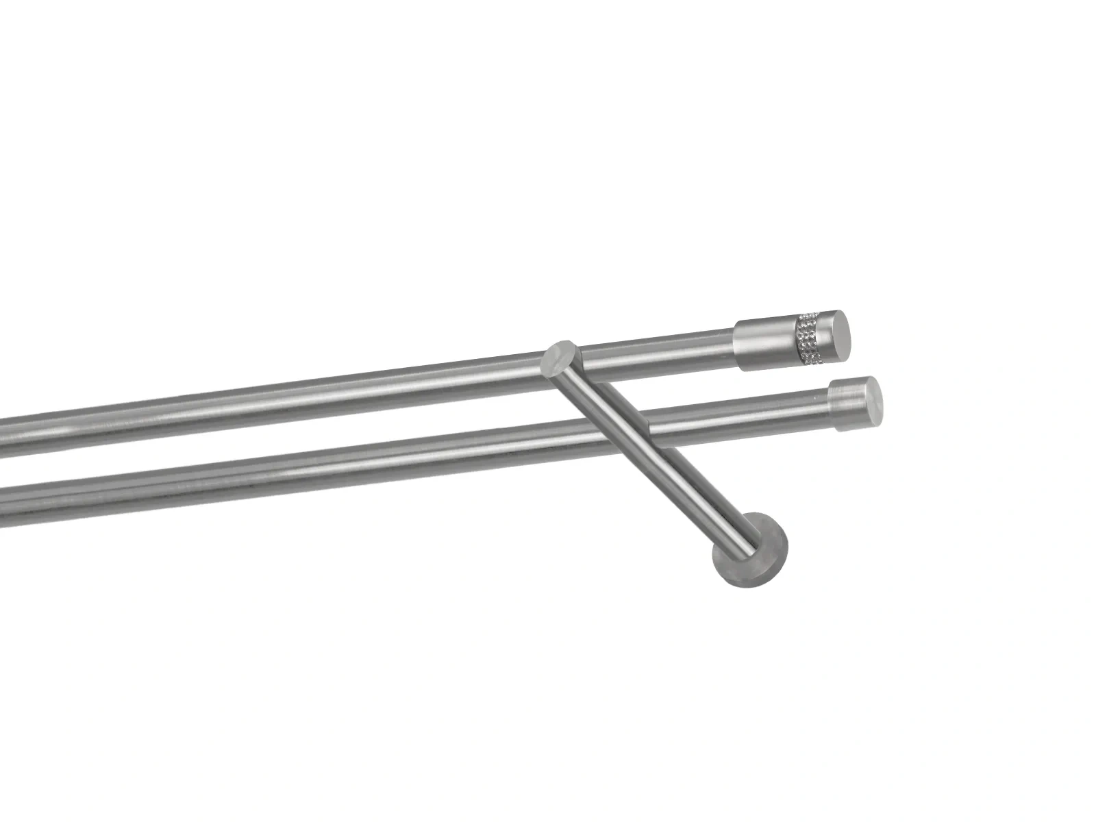 Dvouřadá garnýž s povrchovou úpravou - odstín satin (matné stříbro). Celokovová garnýž s kvalitní povrchovou úpravou - galvanické pokovování. Galvanické pokovování zabezpečuje vyšší povrchovou tvrdost, zvýšenú dolnost vůči poškrábání, hladký povrch. Dodávané jsou v kompletech.