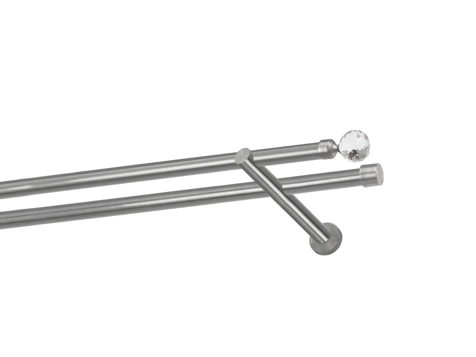 Dvouřadá garnýž s povrchovou úpravou - odstín satin (matné stříbro). Celokovová garnýž s kvalitní povrchovou úpravou - galvanické pokovování. Galvanické pokovování zabezpečuje vyšší povrchovou tvrdost, zvýšenú dolnost vůči poškrábání, hladký povrch. Dodávané jsou v kompletech.