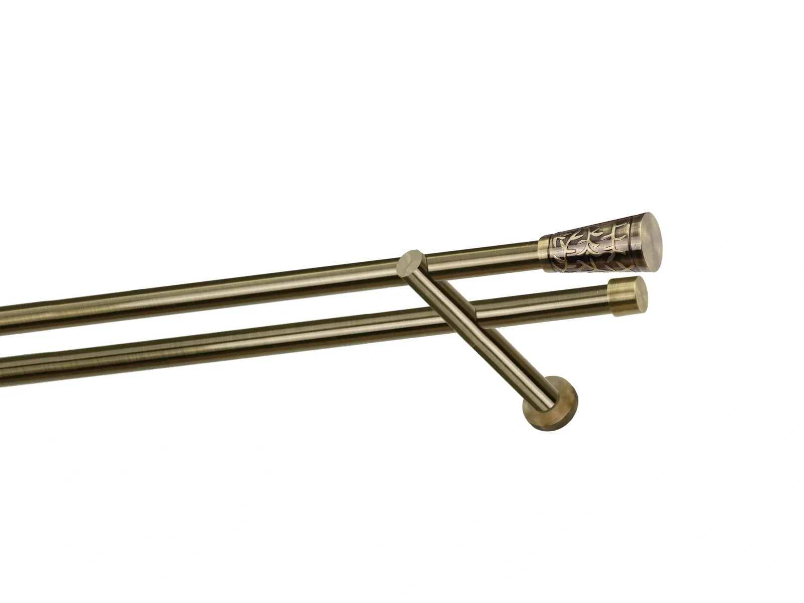 Dvouřadá garnýž s povrchovou úpravou - odstín antik (matné zlato). Celokovová garnýž s kvalitní povrchovou úpravou - galvanické pokovování. Galvanické pokovování zabezpečuje vyšší povrchovou tvrdost, zvýšenú dolnost vůči poškrábání, hladký povrch. Dodávané jsou v kompletech.