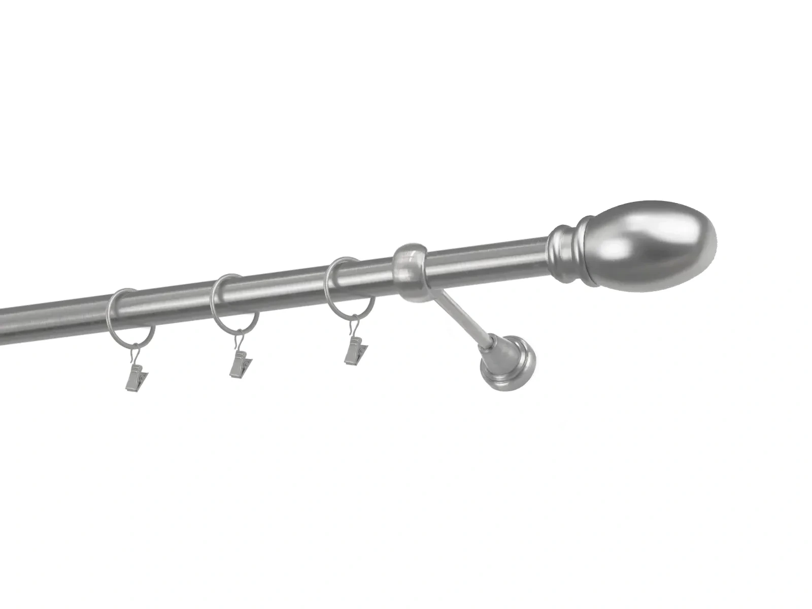 Jednořadá garnýž s povrchovou úpravou - odstín satin (matné stříbro). Celokovová garnýž s kvalitní povrchovou úpravou - galvanické pokovování. Galvanické pokovování zabezpečuje vyšší povrchovou tvrdost, zvýšenú dolnost vůči poškrábání, hladký povrch. Dodávané jsou v kompletech.