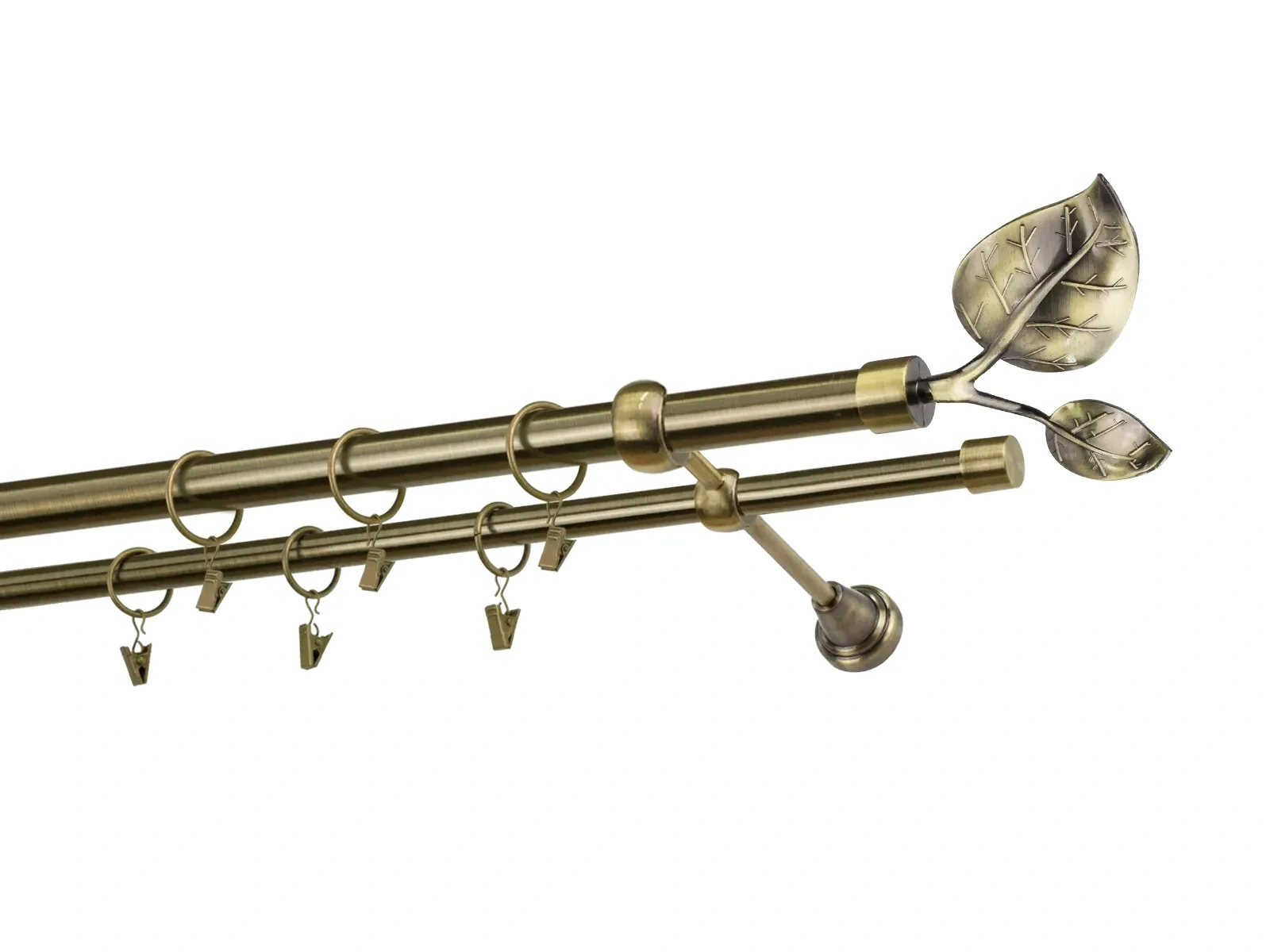 Dvouřadá garnýž s povrchovou úpravou - odstín antik (matné zlato). Celokovová garnýž s kvalitní povrchovou úpravou - galvanické pokovování. Galvanické pokovování zabezpečuje vyšší povrchovou tvrdost, zvýšenú dolnost vůči poškrábání, hladký povrch. Dodávané jsou v kompletech.