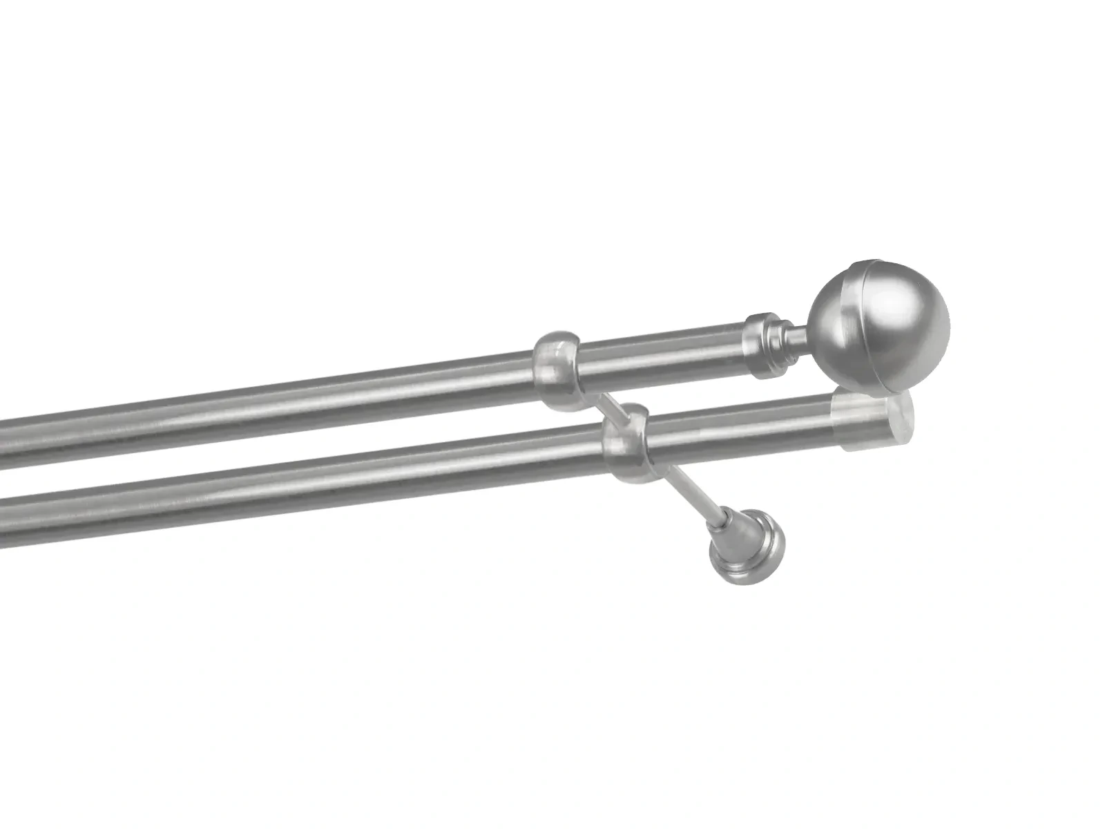 Dvouřadá garnýž s povrchovou úpravou - odstín satin (matné stříbro). Celokovová garnýž s kvalitní povrchovou úpravou - galvanické pokovování. Galvanické pokovování zabezpečuje vyšší povrchovou tvrdost, zvýšenú dolnost vůči poškrábání, hladký povrch. Dodávané jsou v kompletech.