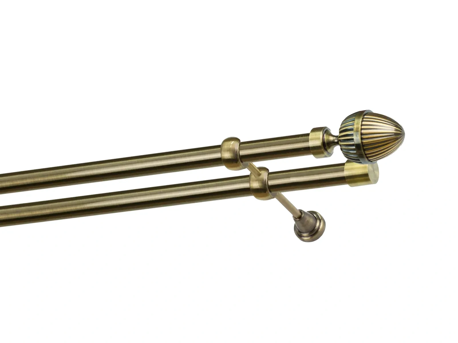 Dvouřadá garnýž s povrchovou úpravou - odstín antik (matné zlato). Celokovová garnýž s kvalitní povrchovou úpravou - galvanické pokovování. Galvanické pokovování zabezpečuje vyšší povrchovou tvrdost, zvýšenú dolnost vůči poškrábání, hladký povrch. Dodávané jsou v kompletech.