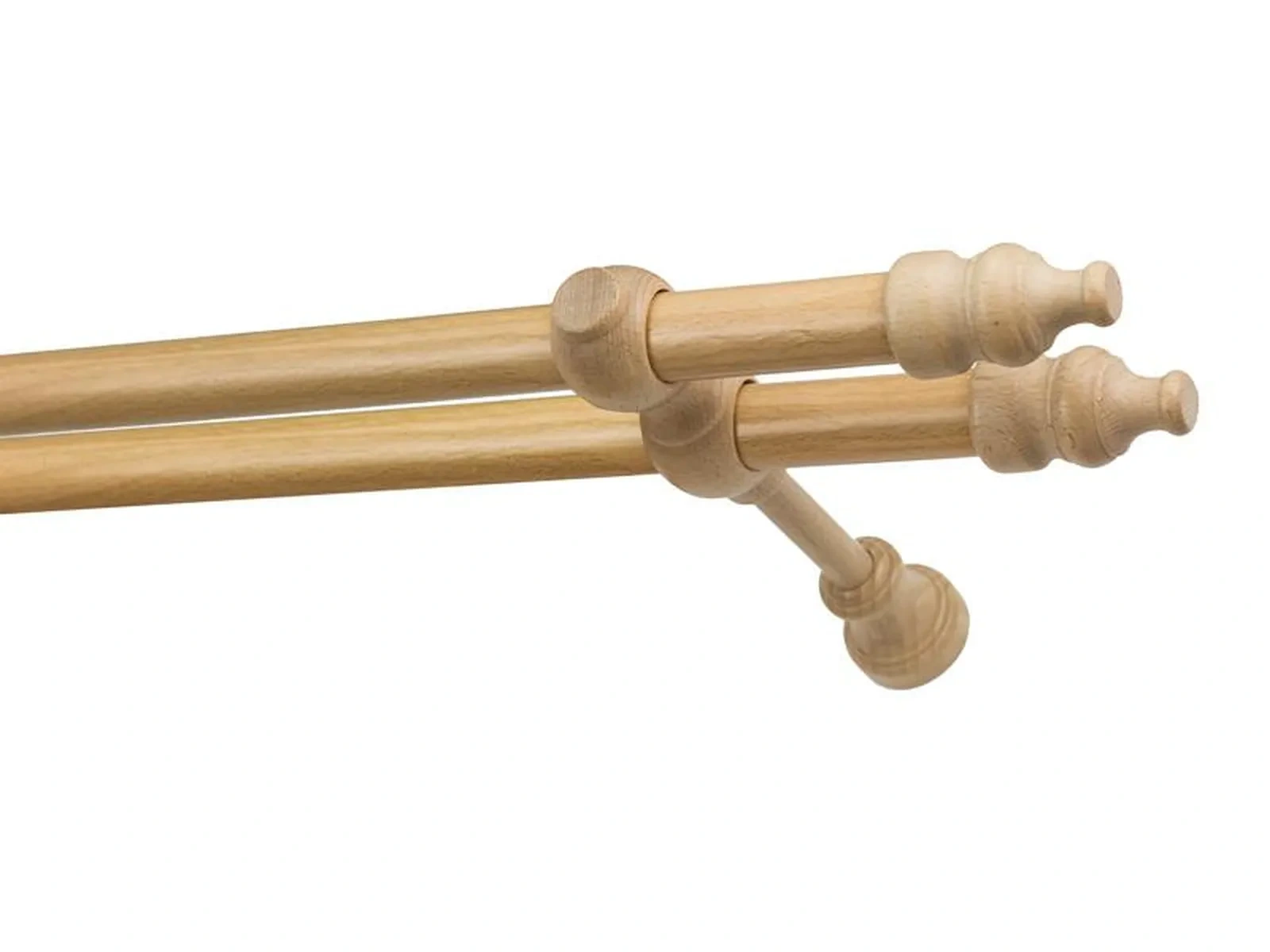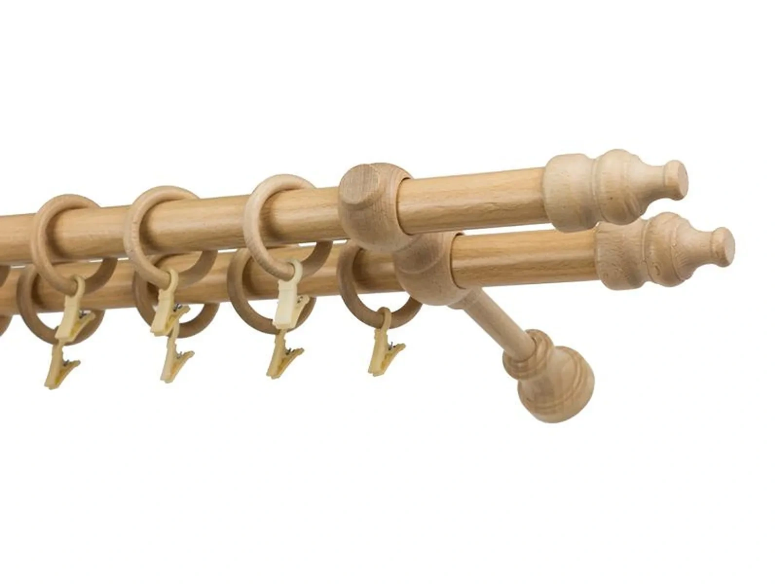 Koncovky, držáky a kroužky jsou dřěvené. Tyč je dřěvená (vyráběná technológii jako europrofily pro okna - co eliminuje ohýbaní vplyvem tepla) a je potažena odolnou dřevoimitační fólií. Dodávané jsou v kompletech.